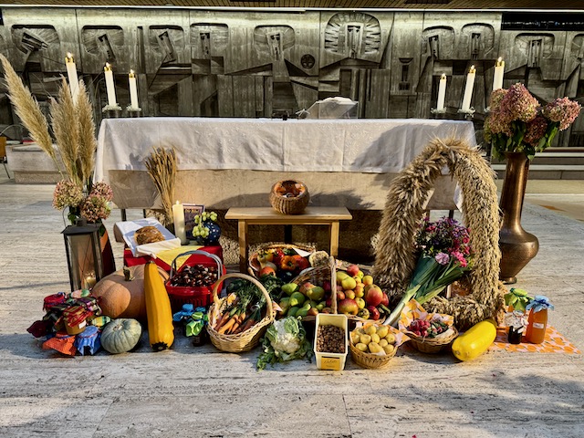 Heute feiern wir das Erntedankfest. Das ganze Jahr über haben wir für gutes Wetter gebetet – für den Wettersegen. Das war unsere Bitte. Heute sagen wir Danke: Danke für die Früchte der Erde, die gewachsen sind, und für die Mühe der Menschen, die es uns ermöglichen, diese Früchte zu genießen. Wenn wir heute Erntedank begehen, dürfen wir nicht vergessen, dass es viele Gründe zum Danken gibt – nicht nur für die körperlichen Gaben, sondern auch für vieles andere, so Pfarrer Berzl.