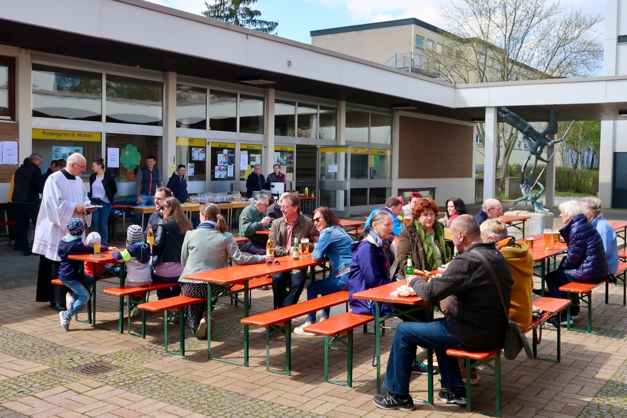 Die Pfarreien St. Martin, St. Georg, St. Michael und die Bergkirche haben gemeinsam den Feiertag Fronleichnam gefeiert. Die Prozession fiel buchstäblich ins Wasser.