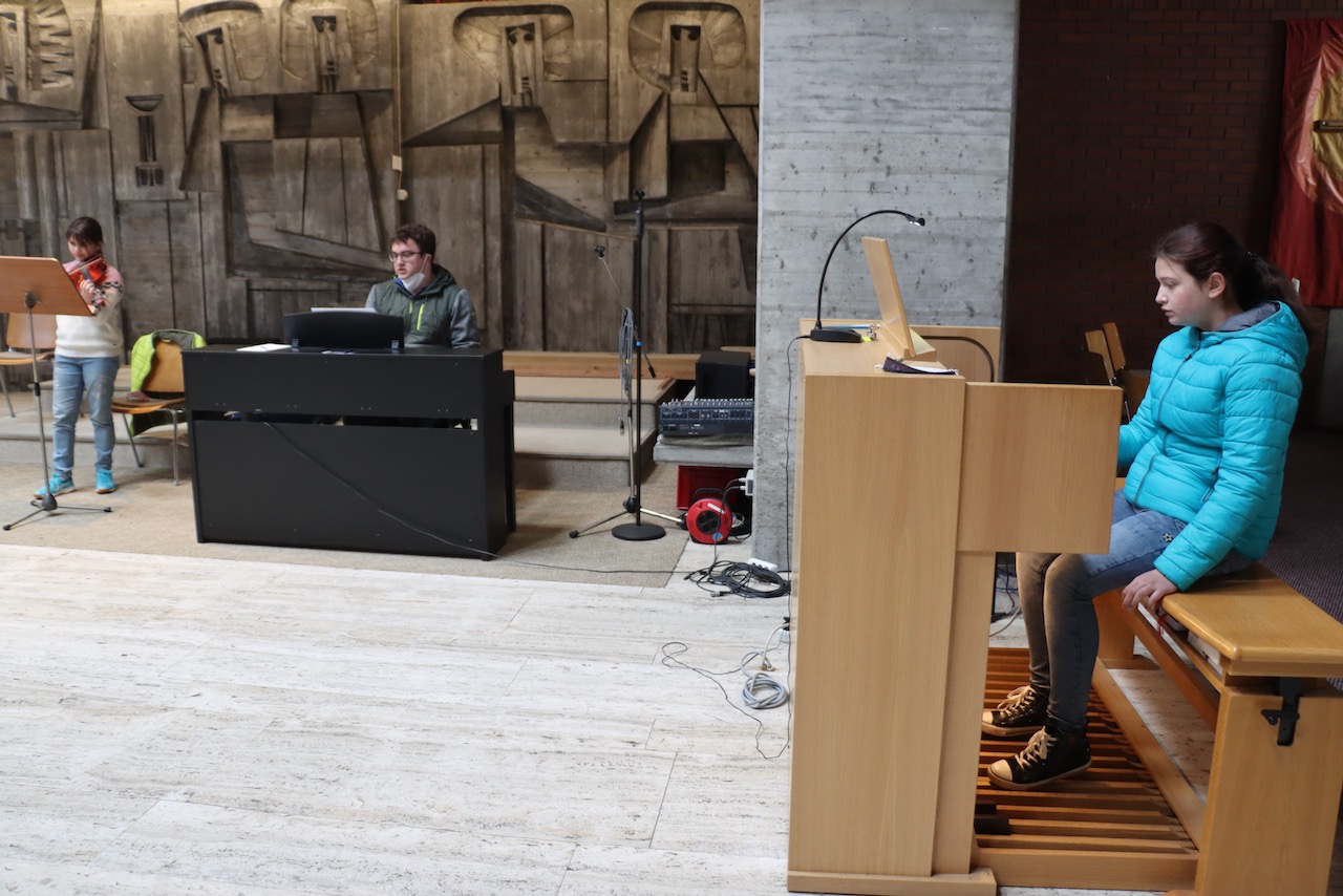 Teresa und Emily begleiteten musikalisch den Gottesdienst zusammen mit Gemeinderefent Benedikt Eckert.