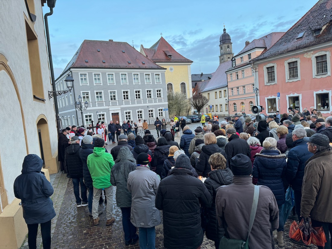 Nachdem im letzten Jahr viele Gläubige der Amberger Pfarreien den Kreuzweg gegangen waren, beschloss man, ihn erneut zu veranstalten. Dieses Jahr startete der Kreuzweg von St. Georg aus. Trotz der Kälte und des strömenden Regens versammelte sich eine beachtliche Anzahl von Gläubigen. Pfarrer Brunner begrüßte seine Priesterkollegen, die Franziskaner vom Maria-Hilf-Berg, sowie alle Mitarbeiter und Mitarbeiterinnen der Pfarreien zum zweiten Kreuzweg durch die Stadt. Es war erfreulich zu sehen, dass trotz des widrigen Wetters viele Gläubige hierher gekommen waren.