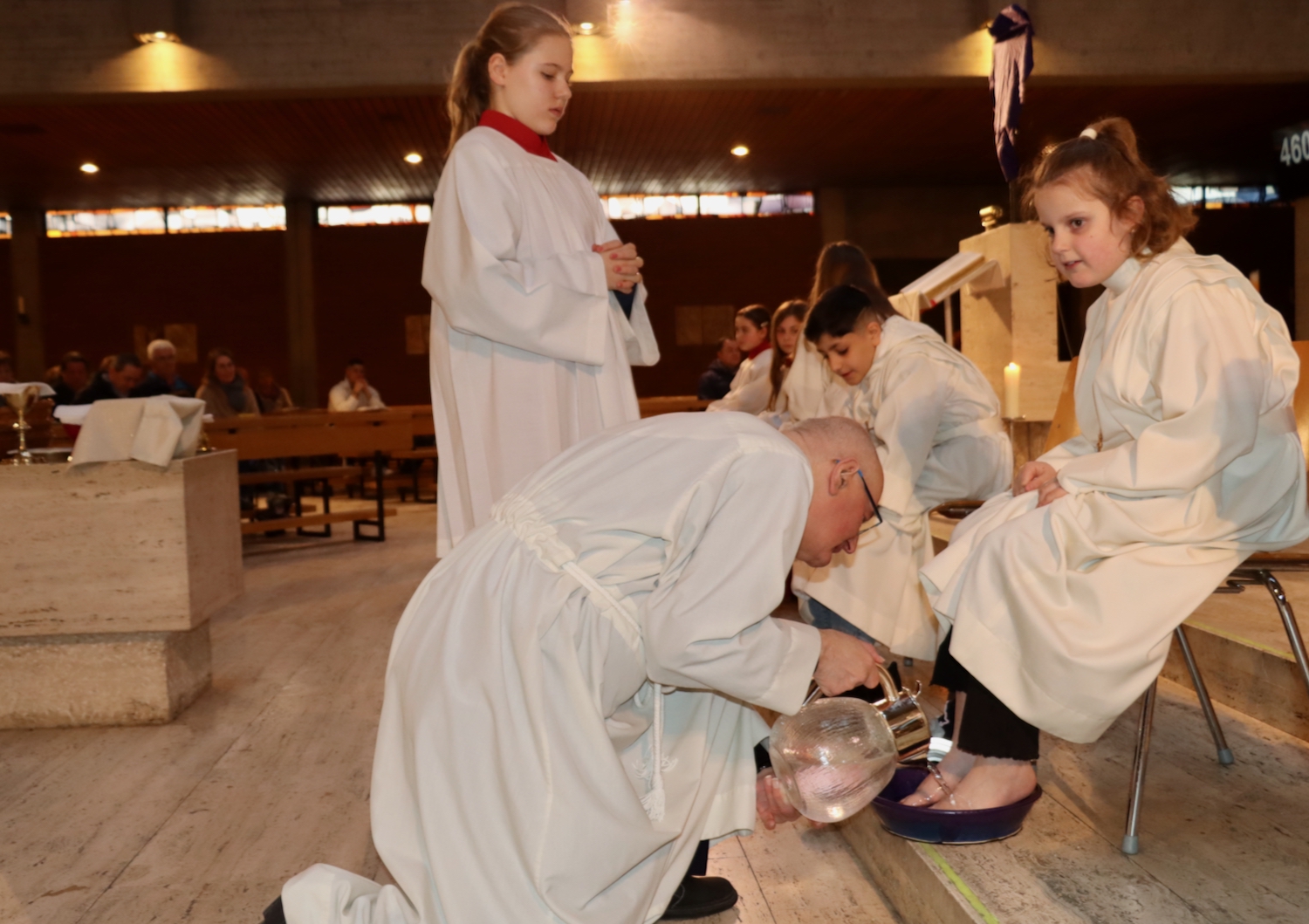 In unserer Pfarrei ist es gute Tradition, dass am Gründonnerstag auch die Kommunionkinder in den Gottesdienst eingebunden sind. Für sie bietet sich an diesem besonderen Tag eine zusätzliche Möglichkeit, erstmals den Leib Christi zu empfangen – bewusst in einem kleineren und besonders feierlichen Rahmen, ergänzend zum eigentlichen Kommunionfest, das in zwei Wochen gefeiert wird.