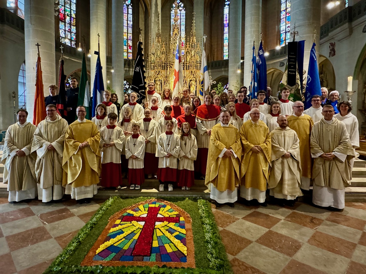 Die Pfarreien St. Martin, St. Georg, St. Michael und die Bergkirche haben gemeinsam den Feiertag Fronleichnam gefeiert. Die Prozession fiel buchstäblich ins Wasser.