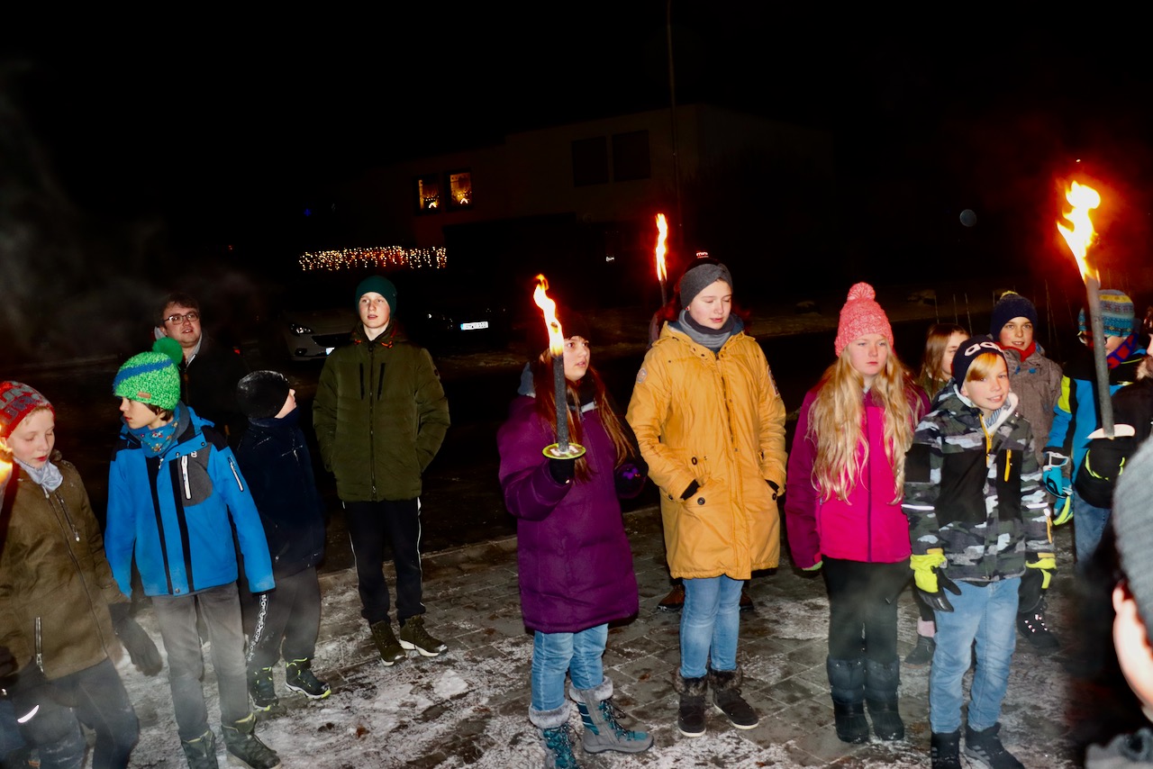 Wie es mittlerweile schon Tradition ist, fand auch heuer wieder eine Adventsfeier der Ministranten statt. Nach der Abendmesse machten sich unsere Minis auf, zu einer kleinen Fackelwanderung rund um‘s D-Programm. Danach ging es in den Clubraum des Pfarrheims. Die Tische waren von den ehrenamtlichen Helfern wunderschön weihnachtlich geschmückt und es gab viel zu naschen. Lebkuchen, Mandarinen und auch Wurst- und Käsesemmeln wurden zu Kinderpunsch angeboten.