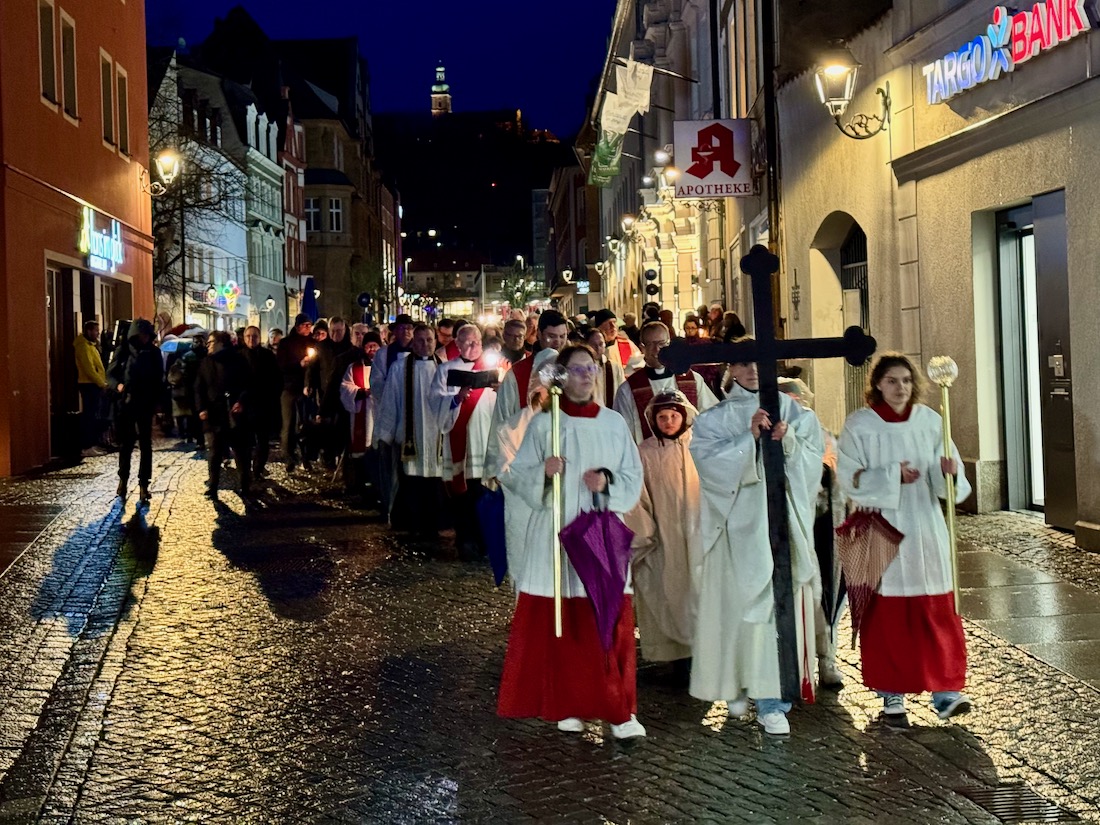 Die Pfarreien St. Martin, St. Georg, St. Michael und die Bergkirche haben gemeinsam den Feiertag Fronleichnam gefeiert. Die Prozession fiel buchstäblich ins Wasser.